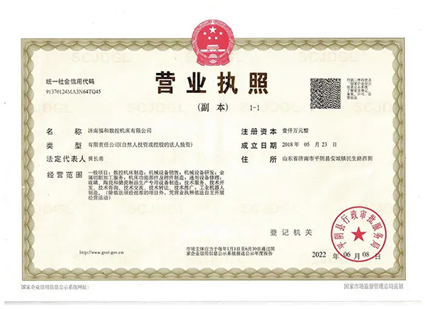 濟(jì)南福和數(shù)控機(jī)床有限公司連年被評(píng)為“ 山東省重合同守信用企業(yè) ”,通過(guò)了ISO9001國(guó)際質(zhì)量管理體系、ISO14001國(guó)際環(huán)境管理體系認(rèn)證,嚴(yán)格按照各管理體系的要求,促進(jìn)企業(yè)持續(xù)健康發(fā)展。